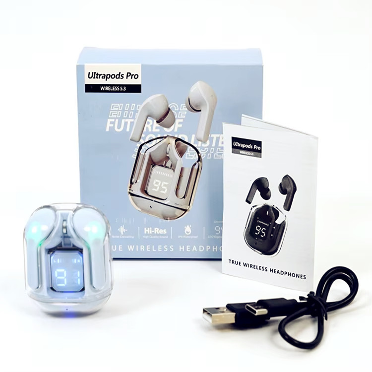 Écouteurs sans fil transparents avec affichage LED