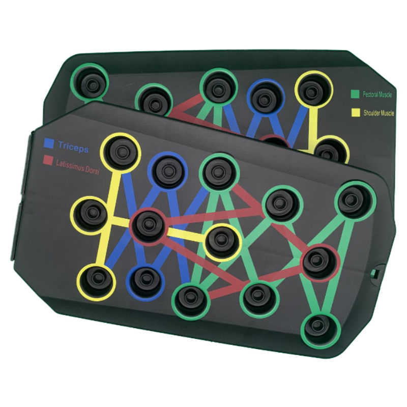 Transforme tes séances de sport à la maison avec cette planche de push-up multifonctionnelle équipée de barres amovibles. Conçue en plastique résistant et antidérapant, elle permet de travailler différents groupes musculaires grâce à son système de repérage coloré qui indique les positions adaptées pour les bras, les épaules, la poitrine, le dos et même les triceps.
