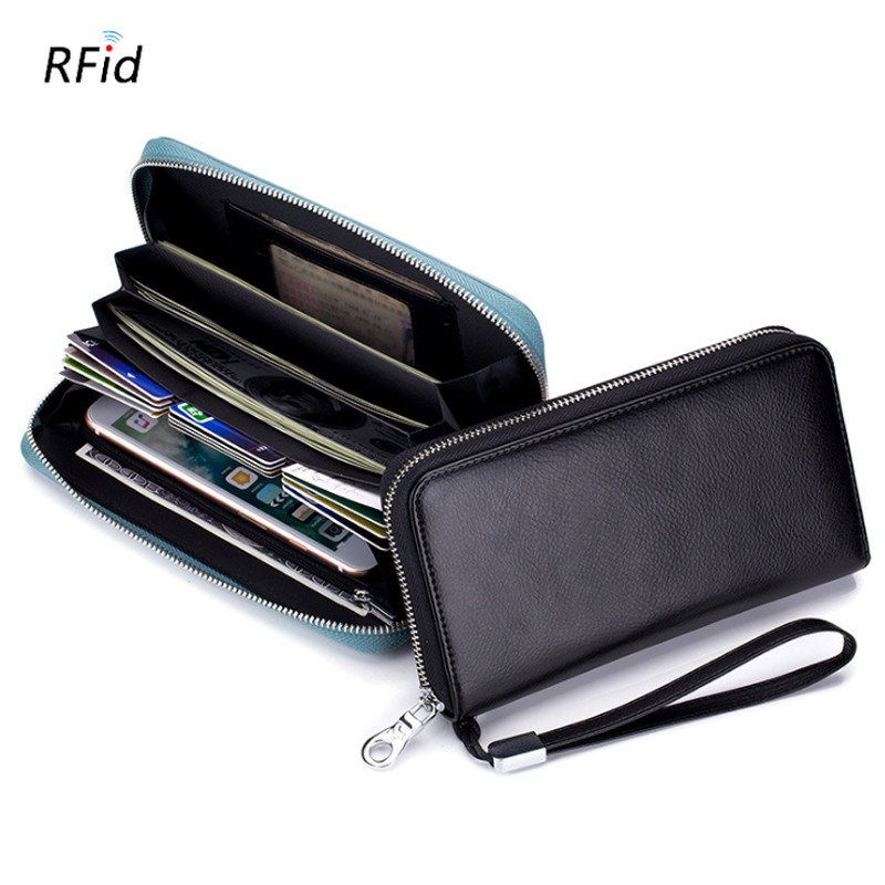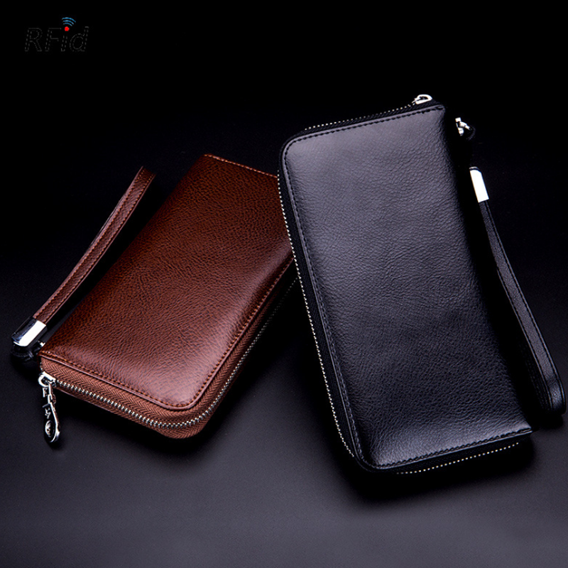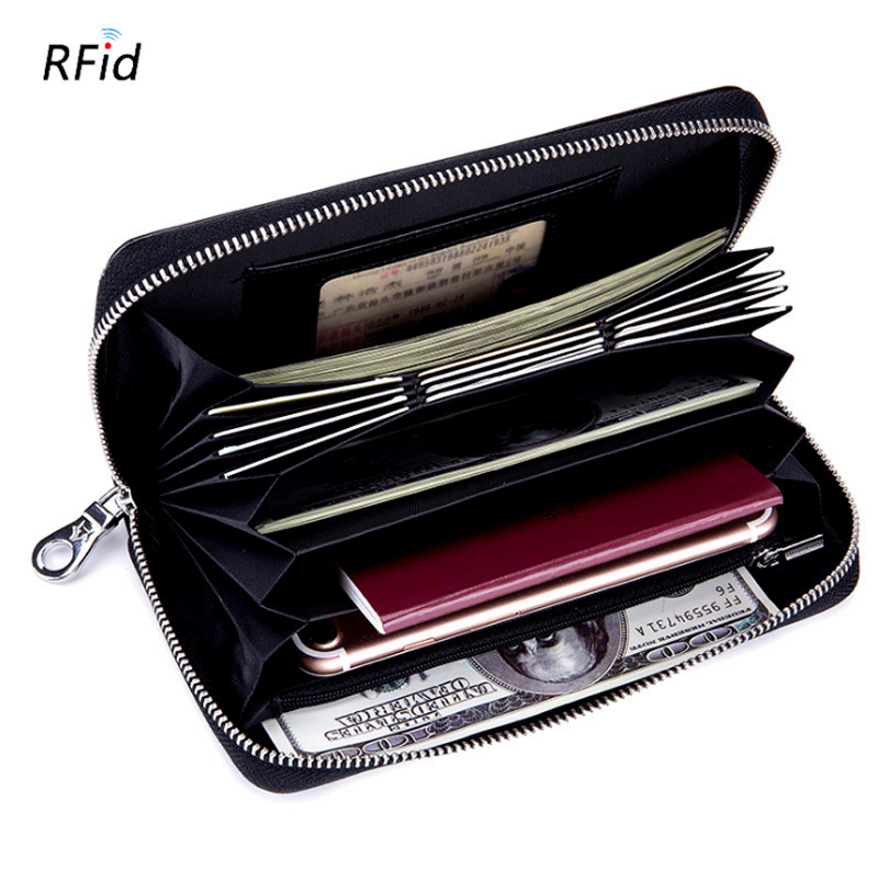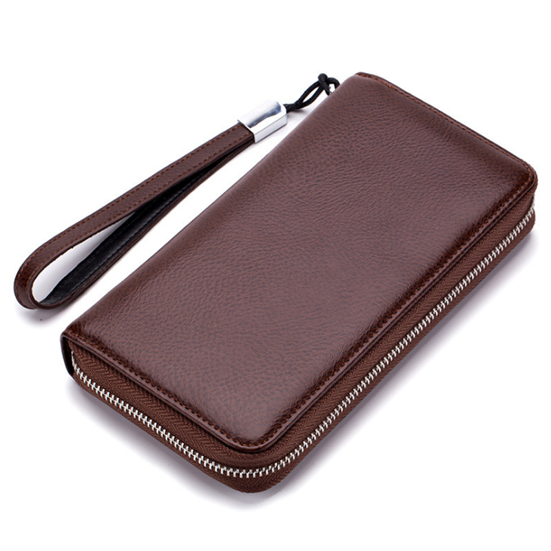 Portefeuille fendu en cuir véritable – Long avec fermeture éclair